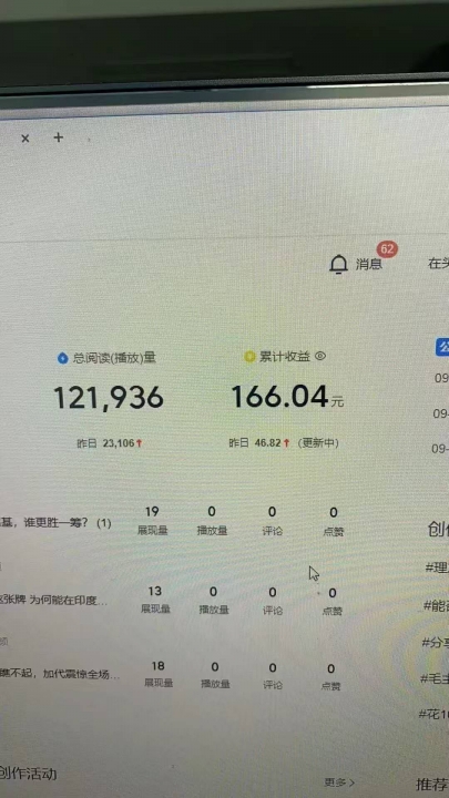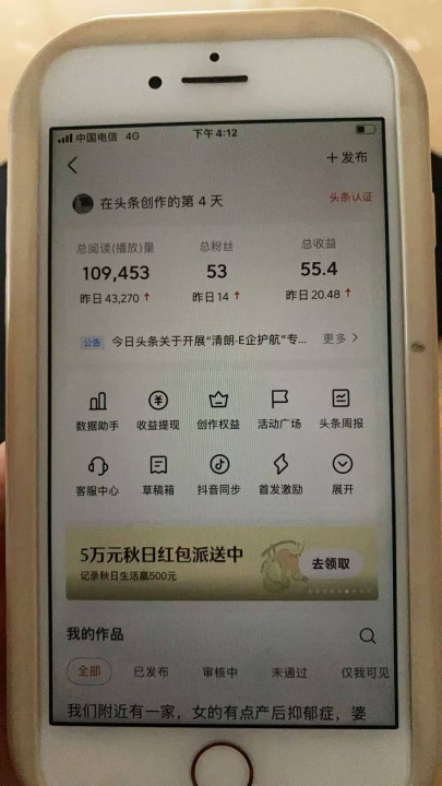 2.连发半个月作品进行养号,期间作品小爆几十,大爆几百块,第二个月开始收益跟暴率会越来越高分成模式: